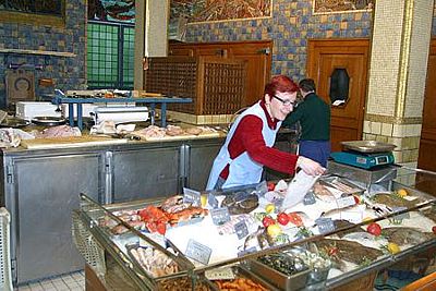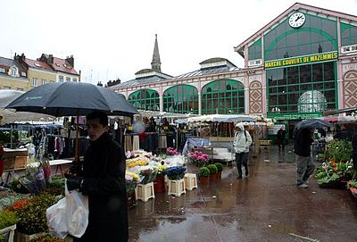 Markt mit den mehr als 100 Jahre alten Markthallen im Hintergrund