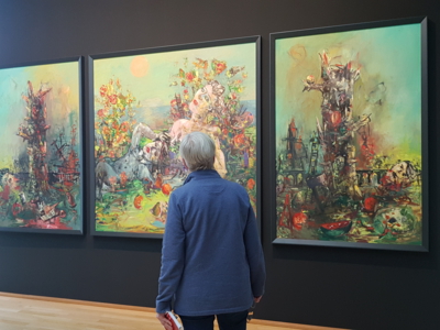 Max Kaminskis Garten der Lüste und eine kunstinteressierte Besucherin