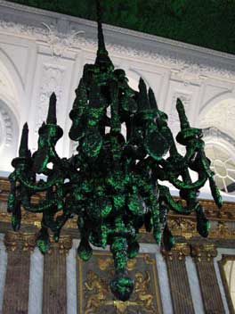 Besonders erstaunt schaut man zur Decke des Spiegelsaals empor, der während der Regentschaft von Leopold II. und Albert I. unvollendet geblieben war. Erst im Jahr 2002 bekam der Saal sein heutiges Dekor mit tausenden und abertausenden Juwelenkäfern an der Decke – ein Werk des Antwerpener Künstlers Jan Fabre, der auch noch den Kronleuchter mit Juwelenkäfern beklebte: 1,4 Mio. Käfer mussten dafür ihr Leben lassen.