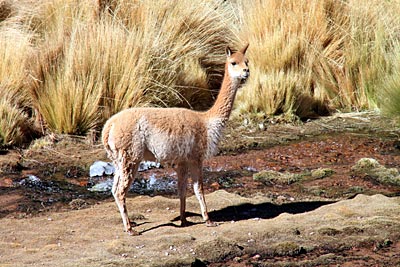 Am Ufer des Putana wartet auch die erste Überraschung. Im Gegensatz zu der mit Ausnahme der Oasen pflanzenlosen Atacama-Wüste schlummert hier rund 1.500 Meter höher ein Feuchtsumpfgebiet, das mit seinen großen Wasservorräten zum Tummelplatz für eine Vielzahl an Tieren avanciert. Hier wimmelt es von Andenmöwen, Nandus, einer Straußenart, und Hornblesshühnern. Auch die stets aufgeregt wirkenden Vizcachas, eine kleine Hasenart mit grünlich schimmernden Fell, Lamas und ihre etwas kleineren Verwandten, die Vicuñas, drängen sich um die Wasserstellen.