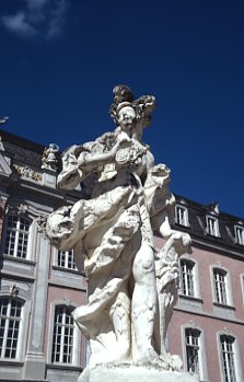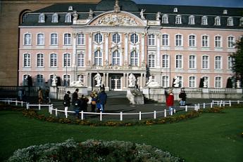 An die Zeiten, als Trier eine der wichtigen Städte des Römischen Reiches war, erinnert die im 4. Jahrhundert erbaute Palastaula, die heute evangelischen Christen als Gotteshaus dient. Dabei handelt es sich bei diesem zweigeschossigen, monumentalen, aus Ziegeln und ohne Stützen erbauten Hallenraum um den Hauptsaal der einstigen kaiserlichen Residenz Konstantins des Großen. Der Palastaula an die Seite gestellt ist das kurfürstliche Palais, dessen Rokokoflügel von einem Schüler Balthasar Neumanns entworfen wurde. Der Skulpturenschmuck, darunter Venus, Apoll und Pomona sowie einige dralle Putten stammen von Ferdinand Tietz. Zu der Anlage des Palais mit Park gehört auch ein Brunnen, dessen Tiergestalten für Abschnitte der Trierer Geschichte stehen: das Pferd für die Kelten, der Adler für die Römer, das Lamm für die Kurfürsten und der Windspiel für die Preußen sowie schließlich die Taube für die Neuzeit.