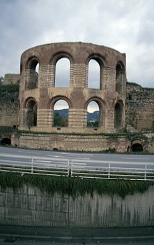 Unweit der Kaiserthermen ergötzten sich in der Blütezeit des Römischen Reiches Zuschauer an zumeist blutigen Spielen. Heute ist das um 100 nach Christus erbaute Amphitheater, in dem einst 20.000 Schaulustige Platz fanden, ein Ort moderner Gladiatorenkämpfe, wenn alljährlich clevere Kultur- und Tourismusmanager zu Brot und Spielen der Neuzeit rufen. Dann stürmen die Helden der Arena mit gezückten Schwertern aufeinander los oder messen sich im Faust- und Ringkampf miteinander. Auf Leben und Tod werden diese Kämpfe nicht mehr geführt, und der Unterlegene wird auch nicht wie zur Römerzeit den Löwen zum Fraß vorgeworfen.