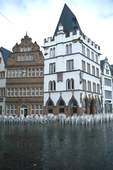 Schlendert man von der Porta Nigra aus durch die Simeonstraße, so stößt man auf das sehenswerte frühgotische Dreikönigen-Haus, dessen ursprünglicher Eingang nicht ebenerdig angelegt war, sondern sich im ersten Stockwerk befand. Nur über eine Zugtreppe konnte man ins Innere gelangen. Dies diente den Bewohnern des einstigen Wohnturms, der heute in originaler Farbgebung zu bestaunen ist, zur Verteidigung gegenüber Eindringlingen. Am Ende der Simeonstraße erweitert sich diese zum Hauptmarkt, an dessen Südseite der Turm der St.-Gangolfkirche die schmucken Häuser am Markt überragt. Mitten auf dem Markt entdeckt man das Marktkreuz, das nicht, wie man annehmen könnte, an die unter Otto dem Großen erlangte Marktgerechtigkeit erinnert, sondern das Symbol der Marktfreiheit und der erzbischöflichen Stadtherrschaft darstellt.