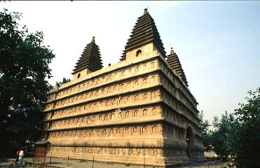 Der ursprüngliche Tempel entstand Anfang des 15. Jh. anläßlich eines Besuchs des indischen Mönches Pandida, der dem Kaiser fünf goldene Buddhastatuen und ein Modell des Tempels mitbrachte, der an der Stelle errichtet wurde, an der der Buddha die Erleuchtung empfing. Der hiesige Tempel wurde dem indischen nachgebaut, später jedoch verändert und mehrfach zerstört.