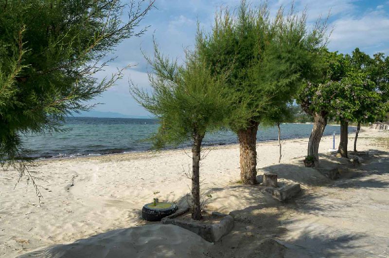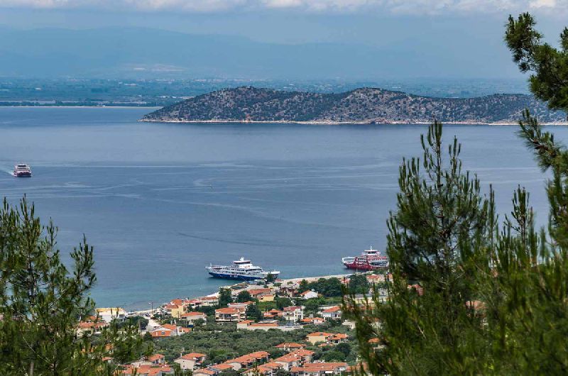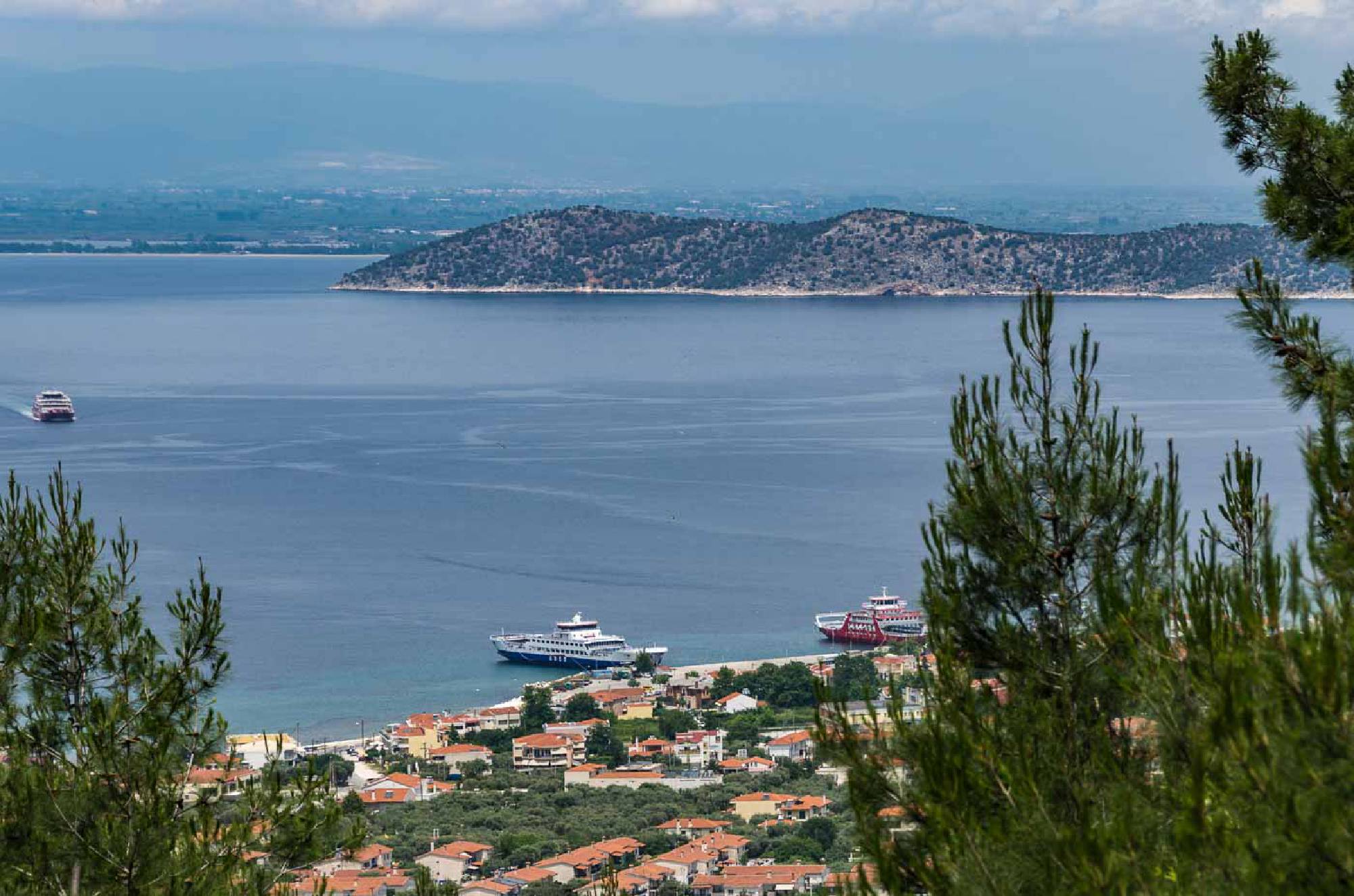 Das nahe gelegene Kloster Archangelou ist wohl die meistbesuchte religiöse Stätte der Insel, Besucher werden mit einem herrlichen Ausblick bis hinüber zum Berg Athos belohnt.