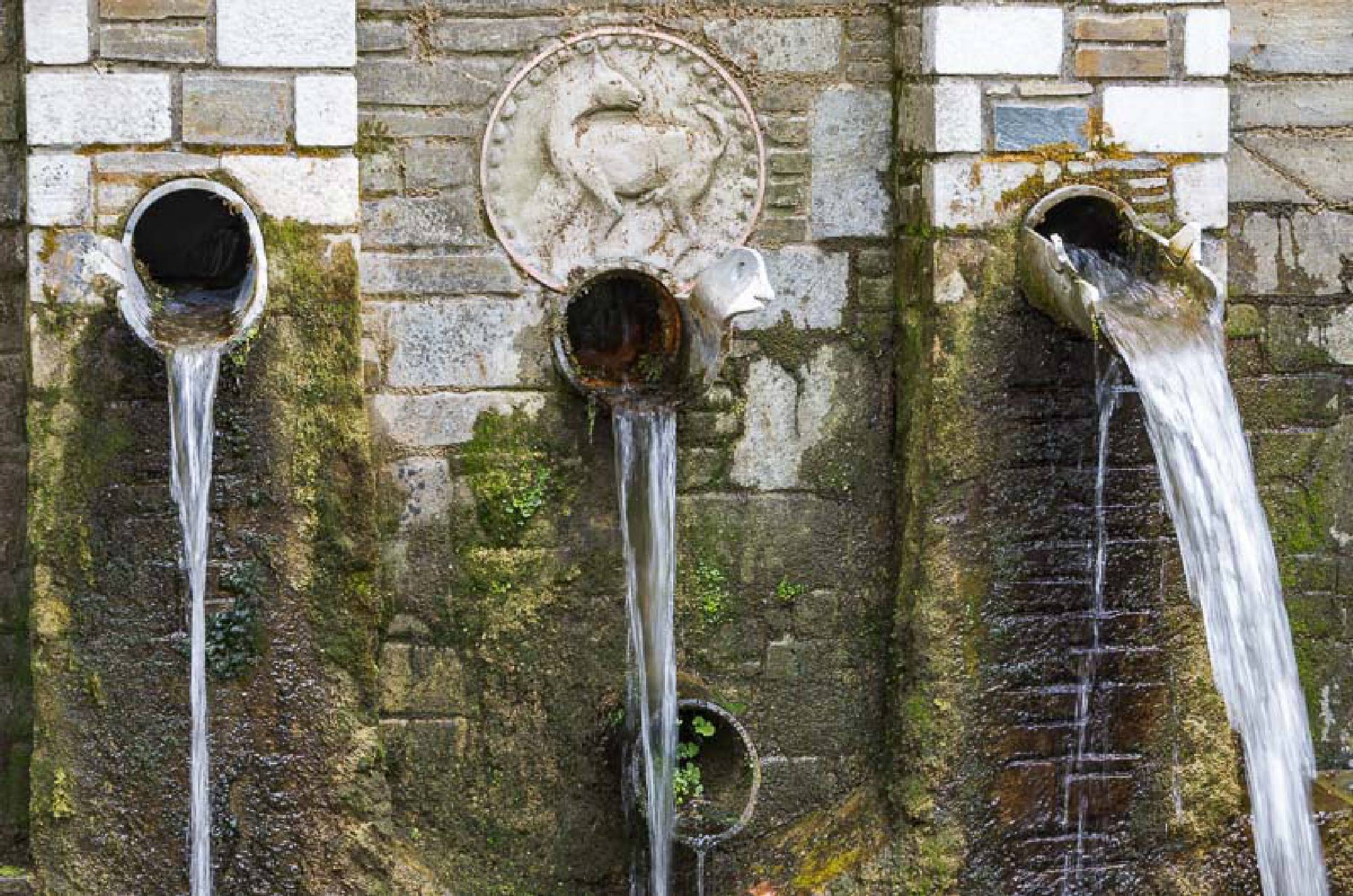Wer die traditionelle thassitische Architektur kennenlernen möchte, der kommt um einen Besuch Panagias nicht herum, wo wir am dritten Tag Station machen. Die meisten Häuser sind mit alten grauen Schieferplatten gedeckt, die Gassen in altem Stil gepflastert. Die Ölmühle Sotirellis mitten im Dorf gewährt einen Einblick in vergangene Formen der Ölgewinnung, es wird aber auch hochwertiges Olivenöl verkauft sowie Mitbringsel rund ums Öl. Ein einladender Ort zum Relaxen liegt etwas oberhalb des Dorfzentrums, wo aus mehreren Quellen eiskaltes, frisches Wasser sprudelt, eine “Brücke der Liebenden” zum Fototermin lädt und eine schattige Cafeteria zum Eiskaffee verführt.
